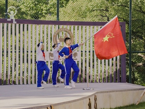 随后少先队员带来朗诵《红领巾的铭记》,并重温入队誓词,铿锵有力的誓言在校园上空回荡,彰显着新时代少先队员不忘历史、继承遗志、奋发向上的决心。领导嘉宾与少先队员代表依次向象征革命精神的纪念碑敬献鲜花,表达对先烈们的无尽哀思与崇高敬意。